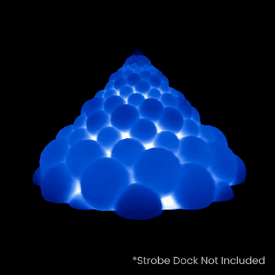 Pulsing Bubbles was born from an exploration into how to adapt the simplest shape in the cosmos into a transfixing phenomenon. The slow undulation of the spheres imparts to the viewer a sense of marine tranquility, unmatched by any of our other sculptures. It almost looks like it belongs at the bottom of an aquarium, though we highly advise against doing so as none of our Strobe Docks are even slightly water-proof.