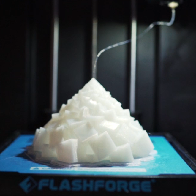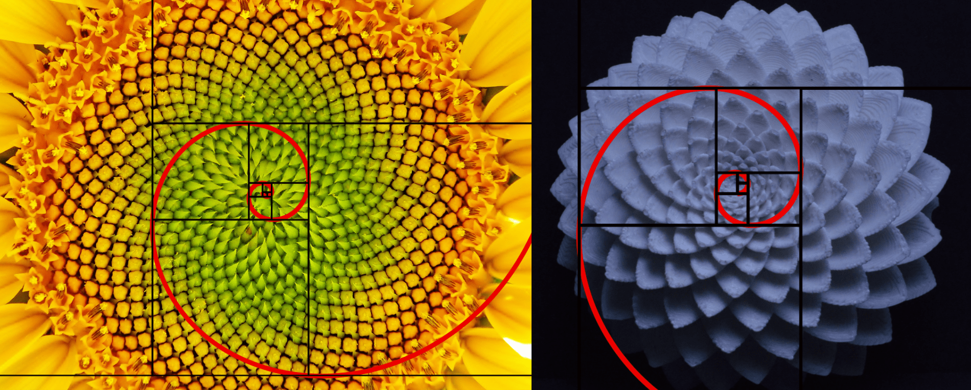 Each 3D sculpture is mathematically modeled after phyllotactic spirals found naturally ocurring in flowers, leaves and other organic structures. The Fibonacci Sequence and Golden Spirals are driving mathematical principles at play.
