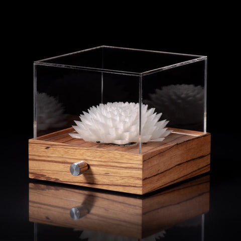 The ultimate expression of naturalistic and technological fusion. Hand-crafted from exotic African Zebrawood, for those with a keen eye for the refined, to add a truly unique piece to your collection of rare interactive artwork. Laboriously designed and assembled by Master Woodworker David Keeber based out of scenic Sedona Arizona. Finished with a durable, silky smooth coating. Very limited stock.